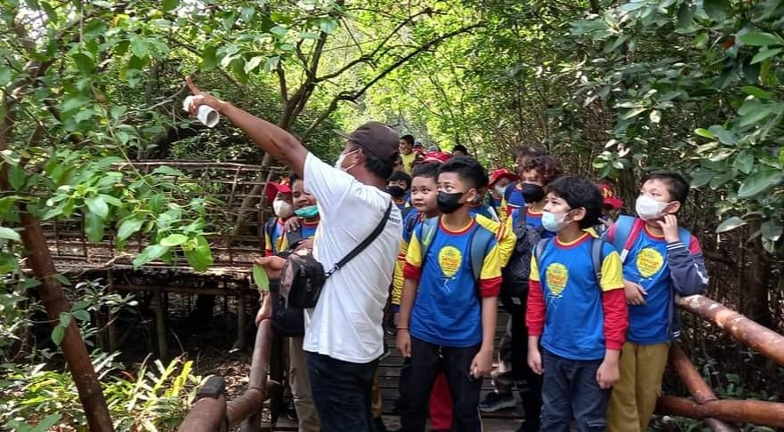 Ustadzah Rima menjelaskan, pada program outdoor learning kali ini, para siswa Sekolah Kreatif SDM 16 Surabaya diperkenalkan dengan sumber daya alam hayati yang ada di sekitar hutan Mangrove Wonorejo.