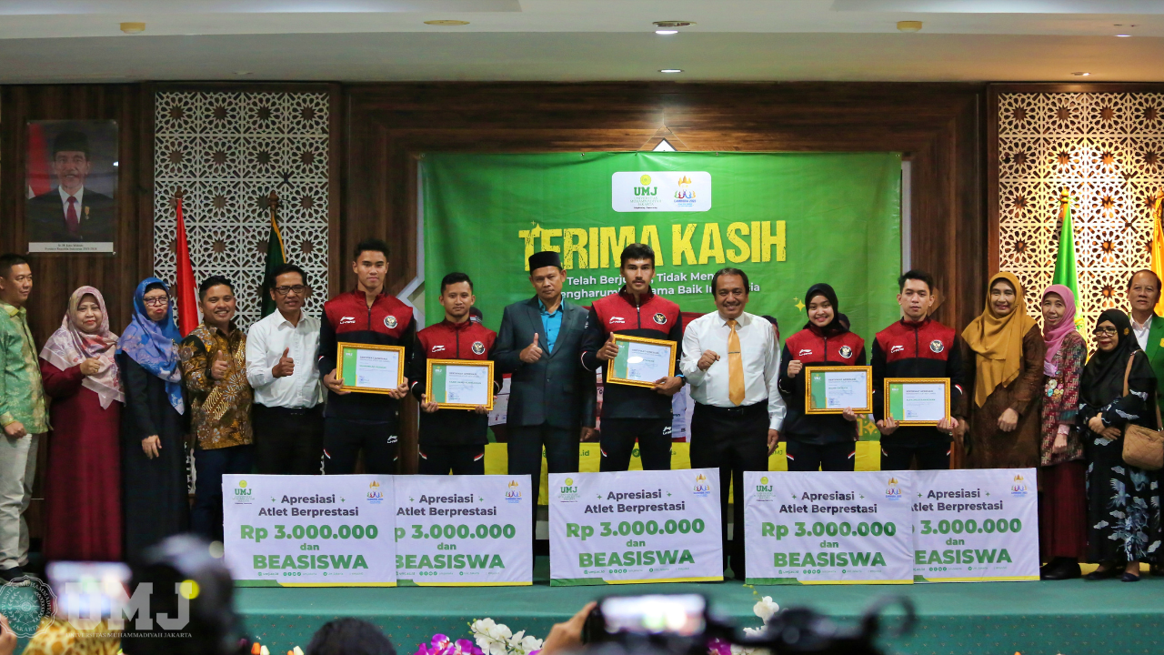 Universitas Muhammadiyah Jakarta (UMJ) berikan apresiasi kepada 5 mahasiswa berprestasi pada bidang Non-akademik atlet Indonesia yang sukses membawa banyak medali di ajang Sea Games 2023 di Aula Kasman Singodimedjo FISIP UMJ, Rabu (24/05/2022).