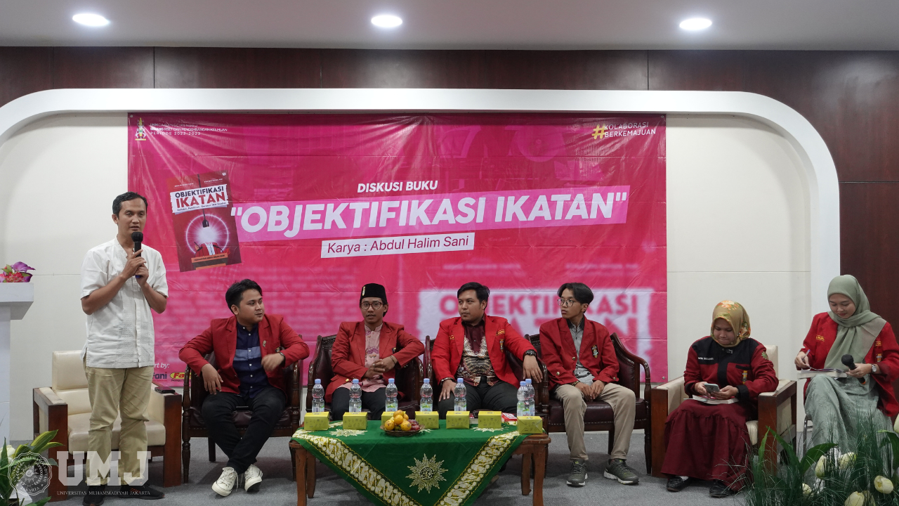 Ikatan Mahasiswa Muhammadiyah (IMM) Pimpinan Cabang (PC) Cirendeu menggelar diskusi dan bedah buku berjudul Objektifikasi Ikatan Refleksi, Pemikiran, Gerakan IMM Studies karya Abdul Halim Sani. Kegiatan yang digelar secara luring ini dilaksanakan di Aula Fakultas Hukum Universitas Muhammadiyah Jakarta, Jum’at (23/06/2023), dan dibuka oleh Ketua Dewan Pimpinan Daerah IMM DKI Jakarta Bidang Riset Pengembangan Keilmuan Bayu Jati Prakoso, M.Ikom.