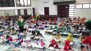 Setelah membuka secara resmi acara porseni ini, para tamu undangan berkunjung ke lokasi perlombaan dan melihat anak-anak sedang mengikuti perlombaan mewarnai.