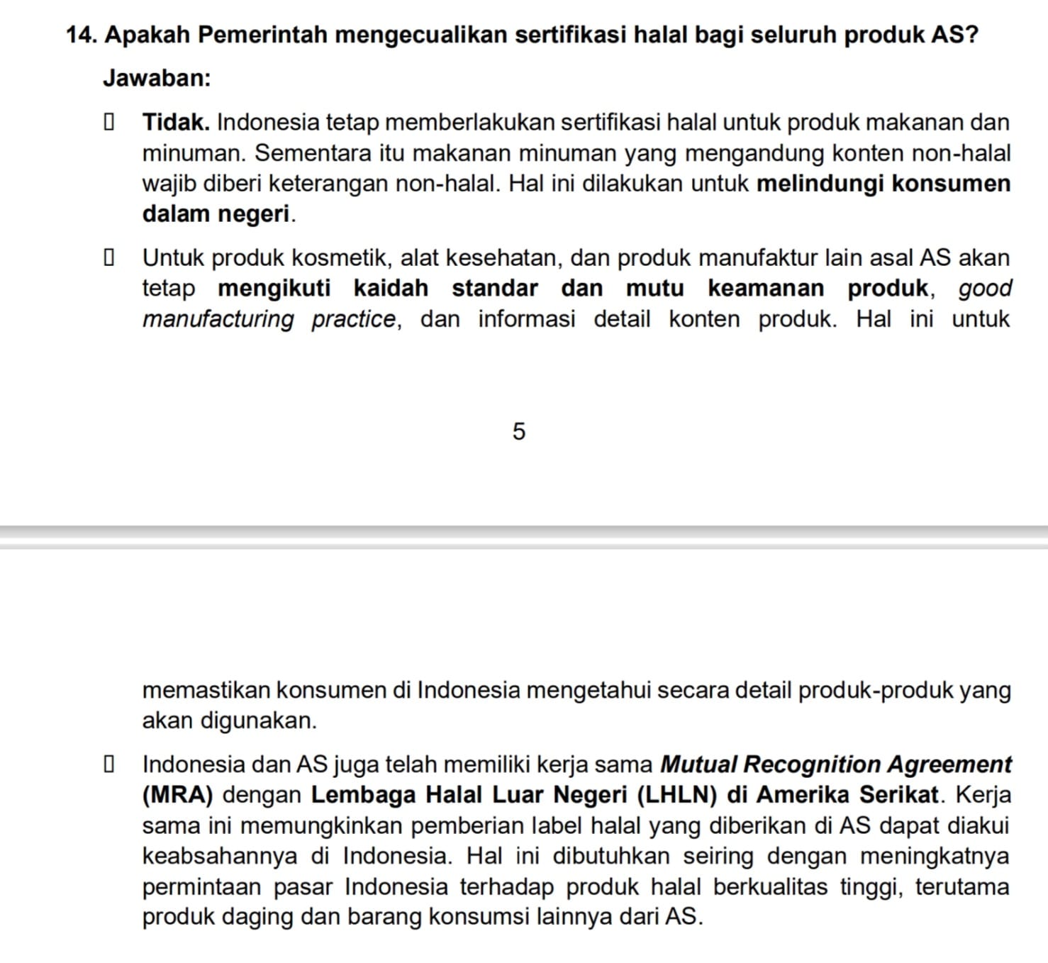 Dokumen penjelasan resmi Kementerian Koordinator Bidang Perekonomian pada poin 14. foto: MUI Digital